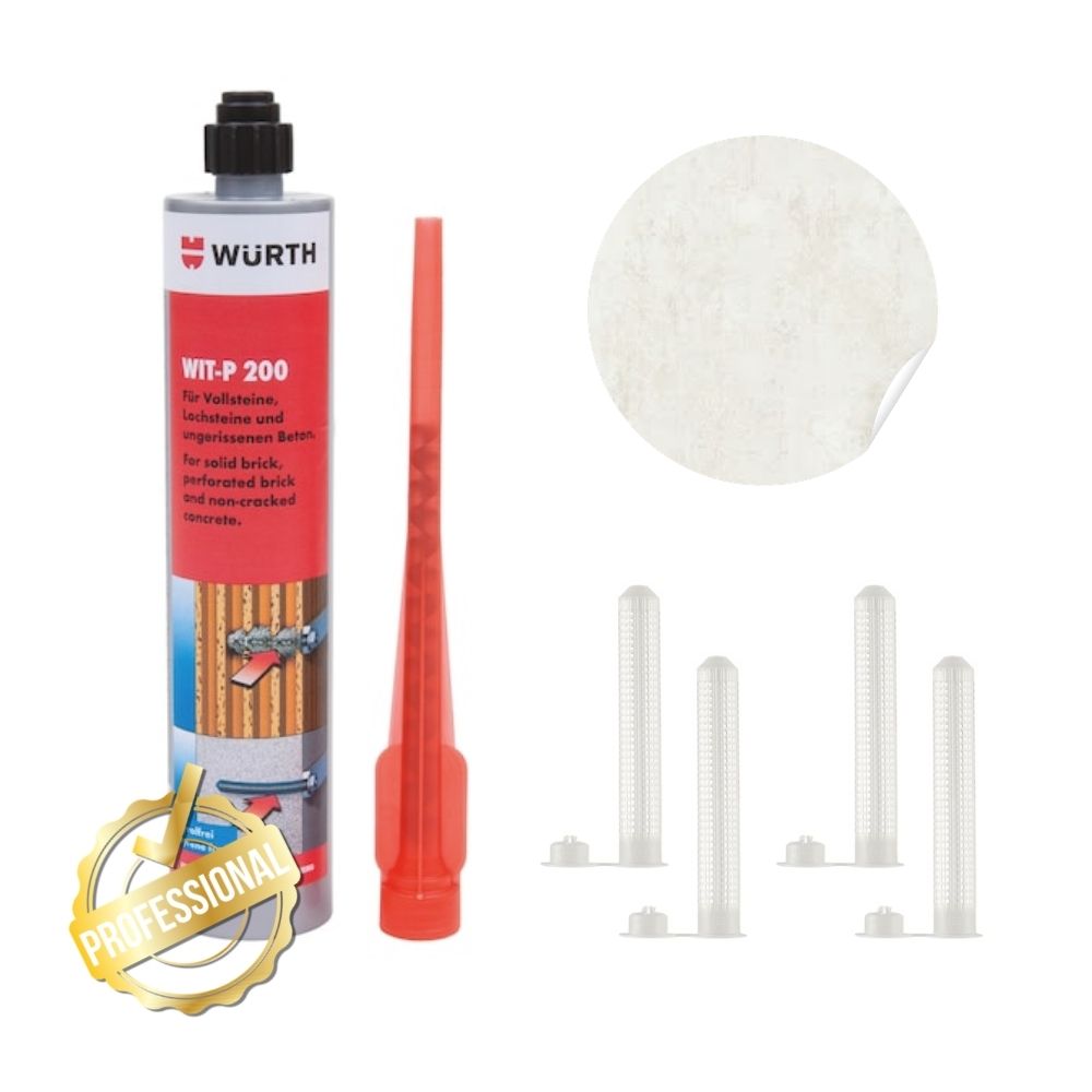 Tamis + scellement chimique professionnelPour garantir une fixation fiable de votre voile d’ombrage dans un support creux (parpaing ou brique), nous fournissons un jeu de pose complet comprenant un tamis et un scellement chimique professionnel Würth.Avantages du jeu de posefixation fiable dans parpaing et maçonnerie creusescellement chimique professionnel haute résistancerépartition optimale de la résine grâce au tamisinstallation simple et durableparfaitement adapté aux ancrages de voile d’ombrageCe jeu de pose assure une installation solide et sécurisée de votre point d’ancrage, indispensable pour maintenir la tension de votre voile dans le temps.